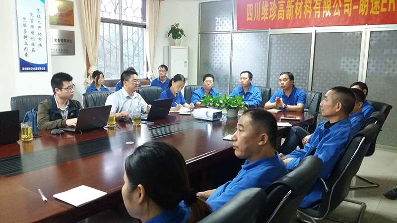 2016年9月18日下午,四川維珍高新材料有限公司ERP項目啟動大會在公司會議室召開。公司領導、中層干部、項目參與人員及項目合作方成都朗速科技有限公司領導及技術人員參加了會議。